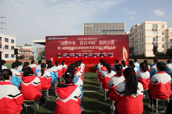 3月6日上午,由江苏新能源置业集团设立的新能源慈善教育奖学金;颁奖仪式在邗江区实验学校举行。市民政局、市慈善总会、邗江区政府、邗江区教育局等相关领导出席颁奖仪式。 首先,邗江区实验学校九年级全体同学进行奋战百日、超越自我、再创辉煌;决胜中考宣誓。接着,一批品学兼优的初三学生登台领取新能源慈善教育奖学金,有50名学生获得一等奖,每人奖...