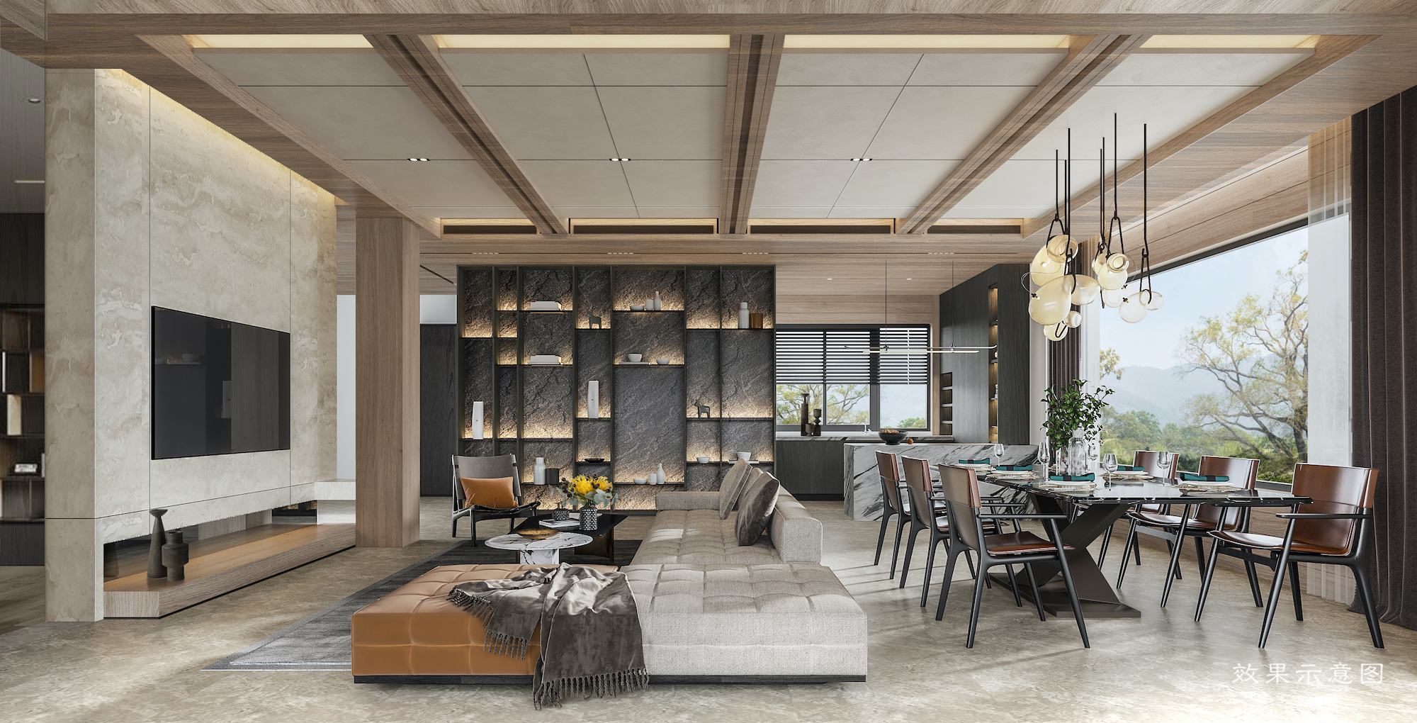 超6.6m的大横厅设计,开启居家环幕视野,打破普通别墅“短开间长进深”的陈旧格局;