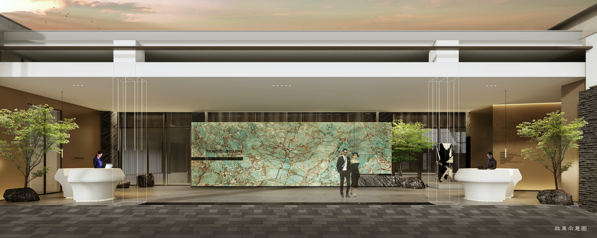 立面回归极简,采用现代建筑风格,以精致的质感肌理、写意的时代美感、细腻的细节打造精湛优雅的立面形象,赋予建筑历久弥新的时代性;