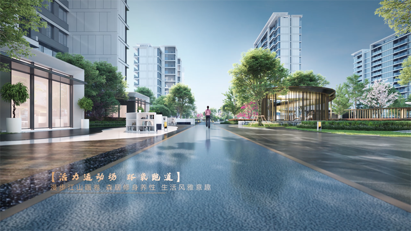 环绕整个项目设有森林健康慢跑系统,打造运动休闲的森居景观慢跑道,实现了环道对全园功能的连接。