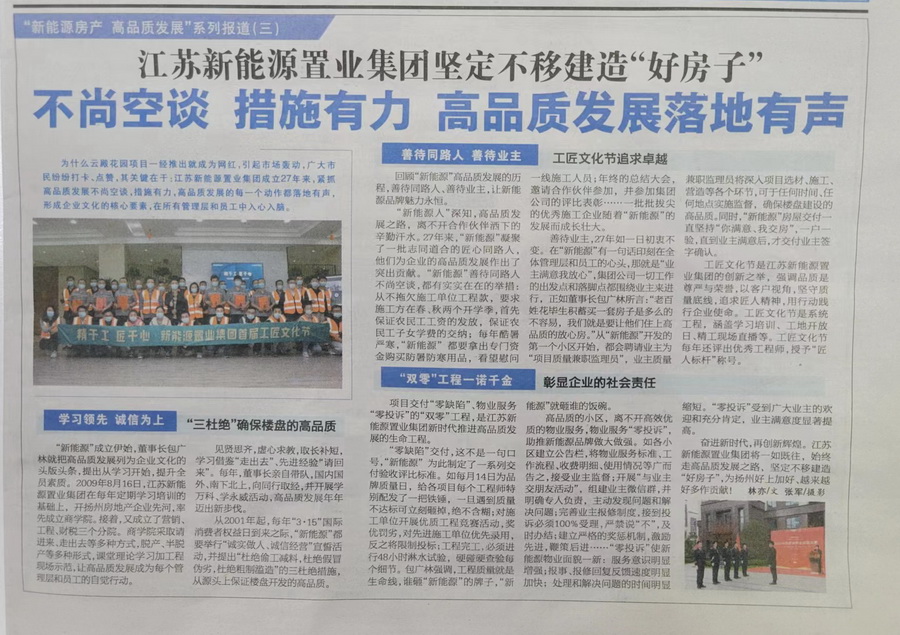 江苏新能源置业集团坚定不移建造“好房子”不尚空谈,措施有力,高品质发展落地有声为什么云殿花园项目一经推出就成为网红,引起市场轰动,广大市民纷纷打卡、点赞,其关键在于:江苏新能源置业集团成立27年来,紧抓高品质发展不尚空谈,措施有力,高品质发展的每一个动作都落地有声,形成企业文化的核心要素,在所有管理层和员工中入心入脑。学习领先,诚信为上,“三杜绝”确保楼盘的高品质“新能源”成立伊始,董事长包广林就把高品质发展列为企业文化的头版头条,提出从学习开始,提升全员...
