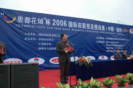 4月22日上午,春雨润后的扬城古运河畔更显旖旎多姿,秀美如画。来自中、澳、俄等10个国家的160名男女运动员在此参加了20公里的竞走盛会。市委副书记洪军,国家体育总局田径运动管理中心主任罗超毅、江苏省体育局副局长周旭等出席开幕式,副市长孙永如致开幕词,独家冠名单位新能源虎豹公司董事长包广林发表讲话。