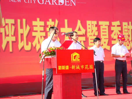 新能源置业集团公司领导、业主代表分别对战高温、冒酷暑,奋战在新城市花园施工现场的广大建设者、工程监理人员表示衷心感谢,希望广大建设者再接再厉,比学赶超,齐心协力,狠抓施工质量,实施全过程监理,将新城市花园建设成苏中大地的一座东方明珠,力争在2008年春节前新城市花园第一组团成为泰兴新区一道靓丽风景,加速新区的腾飞。