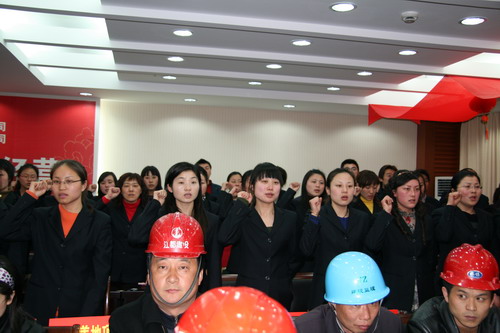 3月13日晚,江苏新能源置业集团有限公司和扬州新能源虎豹房屋开发有限公司在3.15来临之际,在公元国际大厦会议室隆重举行了诚实做人、诚信经营;宣誓活动。新能源营销部、工程部及物管公司人员和扬州各界媒体以及众多新能源项目的新老业主也应约参加了此次活动,30余位业主现场接受了新能源业主兼职工程质量 监理员。新能源营销部、物管公司及工程部也现场宣誓: