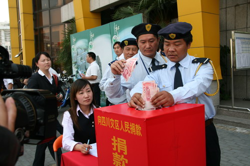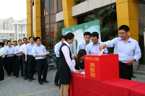 天灾无情人有情,四川汶川的地震灾情发生后,新能源公司积极行动,通过市红十字会向灾区伸出救援之手,江苏新能源置业集团有限公司捐款20万元;扬州新能源虎豹房屋开发有限公司捐款30万元;江苏新能源置业集团有限公司泰兴分公司捐款20万元;