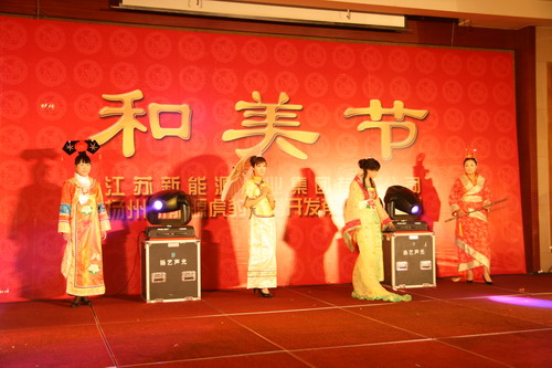锦绣天边挂,彩虹肩上披,引来吉祥鸟,寒冬报春晖。;新能源虎豹公司顾载兵总裁宣读的颁奖辞不仅是对时装秀的最好诠释,而且是对新能源人迎接挑战,战胜严冬心愿的最好表达。最后时装秀、《开心宝》、《卓玛》、武术表演等四个节目分别获得最佳风韵奖、最开心奖、最甜美歌声奖和最佳功夫奖。 和美节;为10家优秀施工单位及供货商代表颁了奖,还进行了幸运抽奖活动。2个小时的晚会始终洋溢着团结、祥和、热烈、欢乐的气氛。