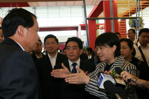 王燕文市长莅临新能源花样年华项目展位与包广林亲切交谈