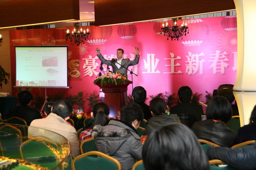 2月6日下午,以五星级标准打造的豪第坊会所里到处洋溢着欢声笑语,100多名项目业主跟建设者们在此举行新春联谊会,新能源虎豹公司董事长包广林和总裁顾载兵分别做了精彩的欢迎辞。