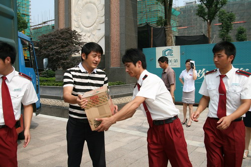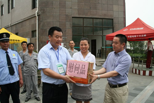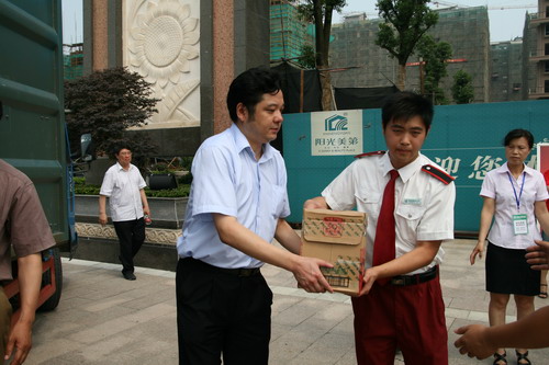 2010年7月5日上午,新能源虎豹公司总裁顾载兵和集团公司总裁助理冯卫琴等领导冒着酷暑来到栖月苑、阳光美第、豪第坊、新城市花园等小区看望工作在一线的保安、保洁等岗位上职工。在炎炎的夏日里给他们送去了冷饮。