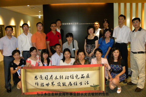 考察团先后参观了住友林业集团总部、住友林业位于日本筑波的两栋样板间、筑波研究所,以及正在施工的木结构房屋现场。住友林业是日本最大的木结构住宅建造商和开发商,每年在日本完成10000栋木结构房屋的建设,04年住友林业在华成立派尔刚木制品公司,专业从事木结构房屋建造。