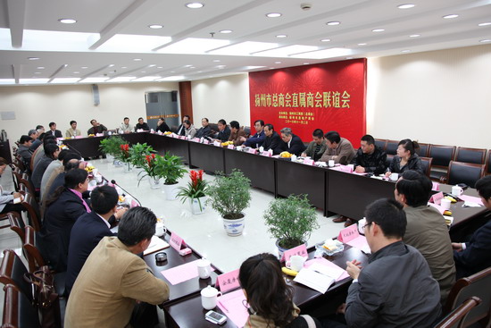 11月2日下午,扬州市总商会直属商会联谊会在公元国际大厦举行,会议传达了10月23日举行的省民营企业经济工作会议;精神,并针对扬州民营企业、尤其是民营房地产企业如何适应新的经济形势进行了一些交流和探讨。