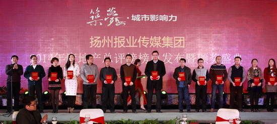 1月21日晚,由扬州报业传媒集团主办的筑梦2015城市影响力2014年度扬州房地产总评榜榜单发布暨领奖盛典;在迎宾馆隆重举行。新能源集团公司的名门壹品、运河一品、豪第坊、揽月豪庭等4个楼盘荣获2014年度扬州价值地产典范楼盘;。