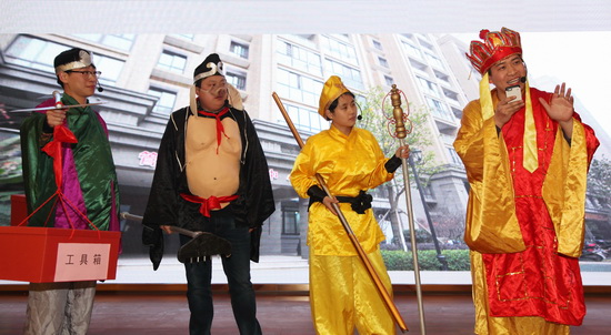新能源物业带来的唐僧师徒小品表演的惟妙惟肖,将新能源物业的日常工作和西游记结合起来,引得现场阵阵掌声。