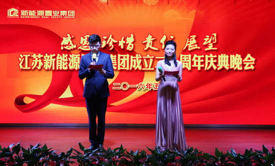 主题为感恩、珍惜、责任、展望;的庆典晚会在欢快的乐曲声中拉开帷幕,集团公司董事长包广林首先致辞,他全面回顾了新能源;20年来的发展成就,衷心感谢各级领导、政府部门和金融单位的关心支持,时刻不忘干部员工及其家属多年来的辛勤付出和默默奉献,心中铭记广大业主对新能源;的信任与厚爱。包广林在致辞中还描绘了新能源;的发展前景,表示要继续发扬新能源;勇往直前、开拓创新的钉钉子精神,建设一流的、高品位的、让业主满意的幸福家园。