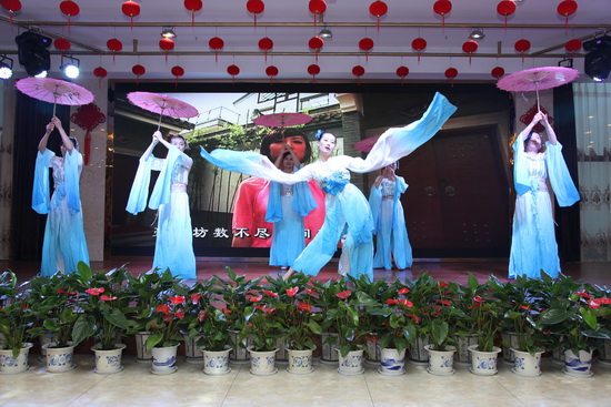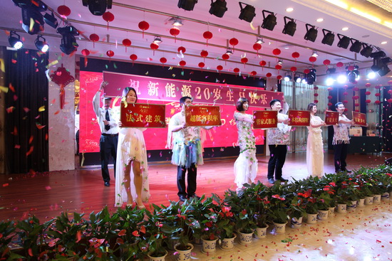 在庆典晚会上,各部门表演了精彩的文艺节目。集团公司领导为辉煌20年 我心中的新能源;征文获奖者颁奖。晚会现场还穿插了抽奖活动。晚会结束时,豪第坊大型喷火喷泉秀,让与会人员流连忘返,把气氛推向高潮。