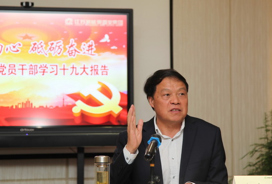 2017年10月26日下午,江苏新能源置业集团组织党员干部在星座国际大厦21层会议室学习习近平总书记在党的十九大开幕式上的报告。