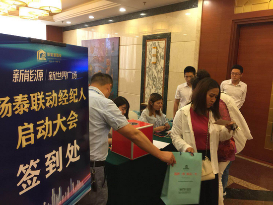 2018年6月21日下午,新能源集团泰兴新世界广场项目扬泰联动中介启动大会在扬州新世纪大酒店隆重举行。数百位中介精英们同新世界广场项目零距离接触了解,现场座无虚席,气氛异常火爆。 不到2点各个中介的金牌经纪人就开始络绎不绝来到活动现场,并在工作人员的引导之下,有序的签到、领取抽奖券和精美礼品并就座。活动还未开始,就已经有中介精英向新世界广场项目工作人员了解项目,迫不及待的想要了解此次扬州泰兴联动销售的更多详情。