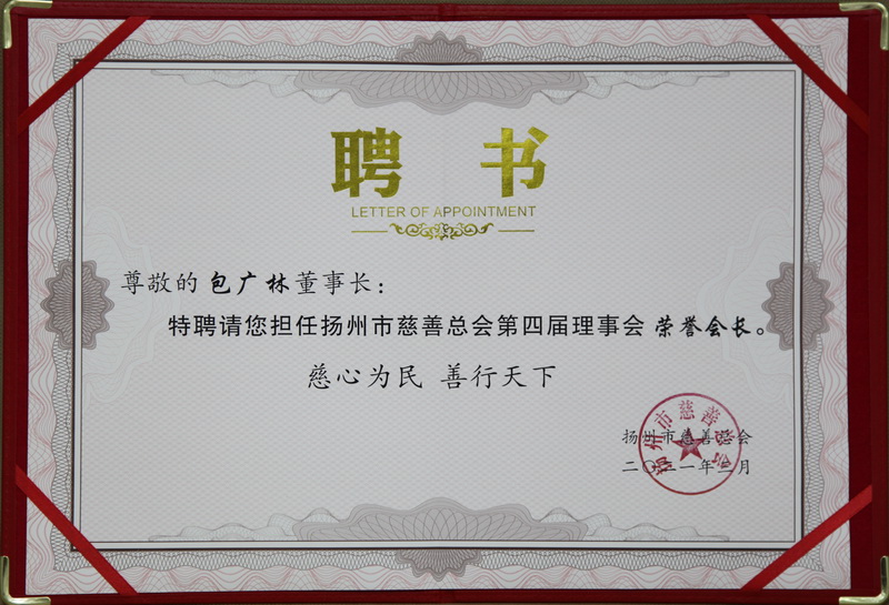 3月26日下午,扬州市慈善总会第四次会员代表大会召开,选举产生第四届理事会、监事会成员。市委书记夏心旻出席会议并讲话。省慈善总会执行副会长刘成林、副会长章大李到会祝贺。江苏新能源置业集团董事长包广林获聘市慈善总会荣誉会长,并接受了获聘证书。