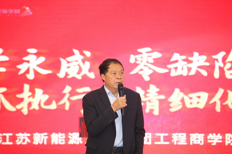 活动开始,江苏新能源置业集团总裁王秋云作动员讲话,他阐述了成立工程商学院的目的和意义,提出了学习培训的具体内容。他说:通过工程商学院这个平台,以便进一步提高“新能源”工程技术人员的政治素质和业务素质,使工程品质再上新台阶,做到学“永威”,零缺陷交付;抓执行,精细化管理;增效益,全过程控制,以适应新时代房地产高质量发展的需要。