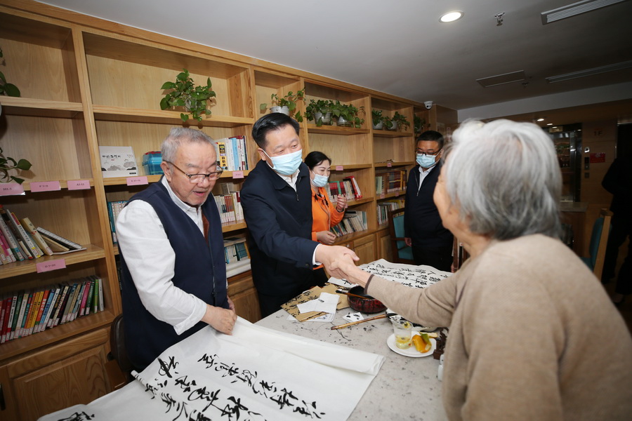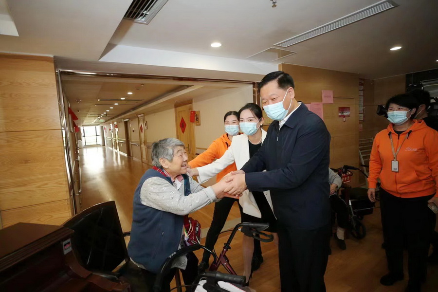在南山公馆,潘国强实地查看食堂、宿舍区、活动区、医务室,详细了解养老机构服务保障情况,并与入住老人亲切交谈,祝福老人健康长寿。他要求:要进一步完善养老服务设施,同步做好物质保障和精神慰藉,不断增强老年人的舒适度、幸福感。入住长者们对潘市长的关心与祝福表示感谢。他们说:在南山公馆生活非常安逸,南山公馆服务人员无微不至的关心、照顾,使他们安享晚年,幸福美满。