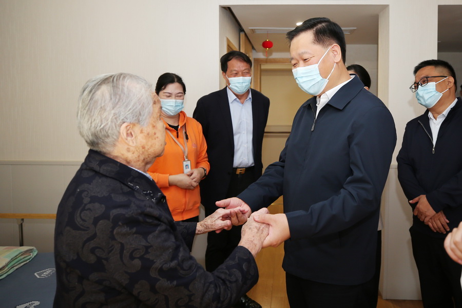 10月23日是重阳节,是日上午,在江苏新能源置业集团董事长包广林陪同下,扬州市市长潘国强赴新能源·南山公馆,走访调研,慰问长者,代表市委市政府向全市老年人致以节日问候和美好祝福。